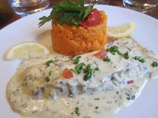 Le Pantruche, 3 Rue Victor Masse, 01 48 78 55 60. This was our first visit to this bistro and I would head there again. It’s fun because it’s located in the Montmarte neighborhood so we ventured out earlier and before sitting down for dinner enjoyed a nice hike up the multiple stairs to Sacre Couer (the other famous church in Paris). There is a fantastic view from the steps of the church as you overlook the city. Montmartre is known for Moulin Rouge and other activities in the neighborhood. It isn’t my favorite spot to visit but it was worth the visit and the adventure to dine at this bistro. Again, there were lots of small, tightly packed tables and chairs, French speaking patrons and delicious fare at a reasonable price. I thoroughly enjoyed my oeuf (egg) with peppers and a smoked chili pepper cream sauce, caille (quail) avec legumes and an incredibly decadent moulten chocolate cake with vanilla ice cream and caramel sauce for dessert. YUM!