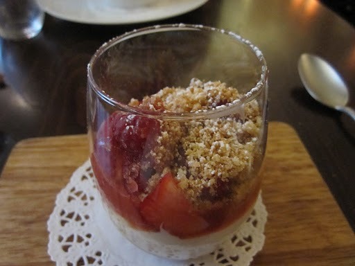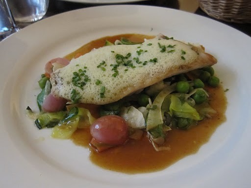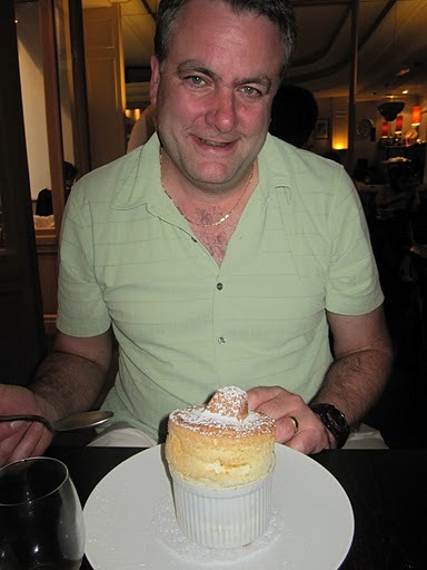 La Regalade St. Honore, 123 Rue St. Honore, 01 42 21 92 40. This was the first time that Dave and I were able to get to this location. We’ve been a few other times to their first La Regalade location and always enjoyed it. I was thrilled when Dave said that he was able to get us a reservation at this, their second location, as it’s closer to the center of Paris. My favorite part of this meal is the pot of pate, canister of pickles, and loaf of bread they bring to the table to start the meal off with it. The pate is a very traditional thick country french style that is absolutely superb slathered on a grainy, wheaty slice of thick french bread with a small gerkin type pickle on top – sublime. I managed to follow this with an entree of white asparagus with a poached egg on top, sauce and fresh herbs, followed by a plat of filet de dorade (white fish), covered in fresh spring vegetables. I dined on my favorite dessert this trip: rhubarb and fresh strawberries layered with mascarpone cheese and topped with a granola like crumble. Dave enjoyed a tuna entree, a cabillaud (cod) plat and a grand marnier souffle for dessert. Absolutely fabulous. Would highly recommend making a reservation if you happen to be in Paris.