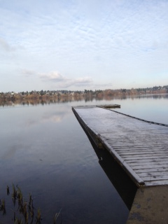 At the start of each New Year I spend some time reflecting, pondering and walking with the question: “What is my word for this year?” Sometimes, a word just pops into my head after settling down and slowing my breathing and just waiting and listening. This year, not so. I’ve journaled, lit my candles, slowed down my breathing and attempted to be quiet and …..nothing. Which, I then started to wonder and ponder, what if my word for the year is, nothing? That just didn’t feel quite right to me, and I’m still wrestling with it. So, yesterday afternoon, on a cold and chilly day here in Seattle, I ventured out with Libby, my faithful walking companion and decided to walk with the word, nothing. I wanted to see where that might lead, or not. I took some landscape photos as I walked and they actually go with the word, nothing. The water in the lake is grey and calm. There’s actually not much of a breeze or wind. There’s some frost covering the decks that span out onto the lake, and it appears as though nothing is happening or taking place.