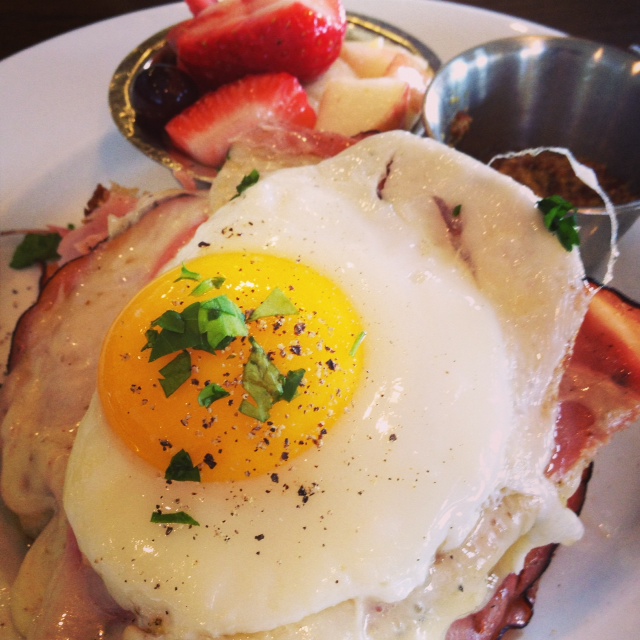 This morning I ate the best Croque Madame – ever! And I have sampled my fair share of these delectable breakfast/brunch items in various locations around the world, and this one topped the entire lot. If you ever find yourself in Albuquerque, make your way to The Grove Cafe and Market, 600 E. Central Ave (www.thegrovecafemarket.com). I happened to find myself in this somewhat off the beaten path location, because my eldest daughter, who attends Seattle University, is throwing the indoor weight throw at the WAC indoor championship being held here at the Convention Center. Ever since my children were born, no matter what the occasion, be it ballet recitals, soccer games, jazz band performances, drama productions, basketball games or track events, I’ve done what I can to watch them participate. It brings a deep joy and delight to my soul to cheer them on and be a part of the wonder of their unfolding stories and lives. This time I was able to work things in my schedule to come here and see her participate in this event. She doesn’t compete until this afternoon so I did a little wandering and exploring in the city this morning. The downtown area, where I’m staying at the Hotel Andaluz (nice, clean, comfortable, convenient location) is kind of sketchy. I passed my fair share of homeless and down and out looking characters on my walk to the cafe this morning. I don’t tend to be nervous or overly cautious about traveling and walking places, but this was a unique and somewhat unsettling experience. Let’s just say, that I won’t be walking about in the dark this evening. I was pleasantly surprised when I walked into the Grove Cafe and Market. It’s a fun, open area space where you place your order at the main counter and then find yourself a table. Your order is then delivered to your table. YUM!!!! Seriously.