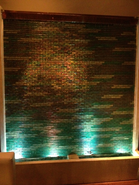 And tucked away in an alcove on the side of the lobby, this: a tile waterfall of water that changed color with the light. I sat myself down on the comfy couch, ordered a mojito, watched the water and thought of my Dad.
