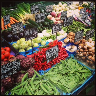 A slice of cheese on toast, and slivers of strawberries and pear all gleaned from the Naschmarkt bounty.