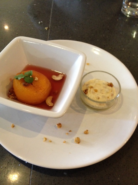 The lightly dressed salad plate, accompanied with cheese and fresh figs sat next to our main course. After this we watched as Diane demonstrated plating our dessert – poached peaches. I left La Cuisine Paris at about 2:15 pm with a very happy and content belly and a smile on my face. Bon appetit 🙂