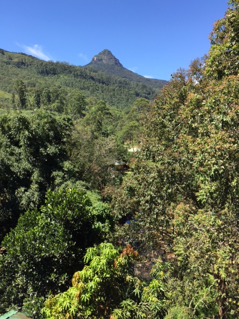 The trek began with a longer than usual drive from Colombo to Dalhousie (unexpected road conditions, an unusual amount of traffic) to reach Adam’s Peak, which rises “like a miniature Matterhorn” from the surrounding lush tropical forest in Sri Lanka.