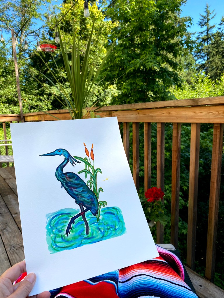 1. Beautiful writing and painting Sharon! What a year! I too am wondering and wandering close to home. I becoming a bird watcher too. So sorry about your separation from your Mom and family north of us. So hard. Blessings to you.
