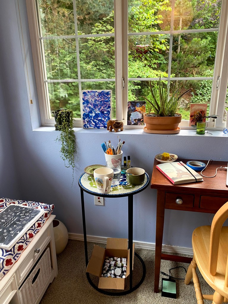 for the bedroom that was our middle child’s, vacated now in their adulthood, reclaimed as my budding artist studio.