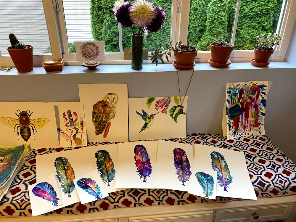 I could not stop painting feathers. “…feathers scribing their own sacred texts.” Christine Valters Paintner, The Soul’s Slow Ripening, St. Brendan and the Songbirds.